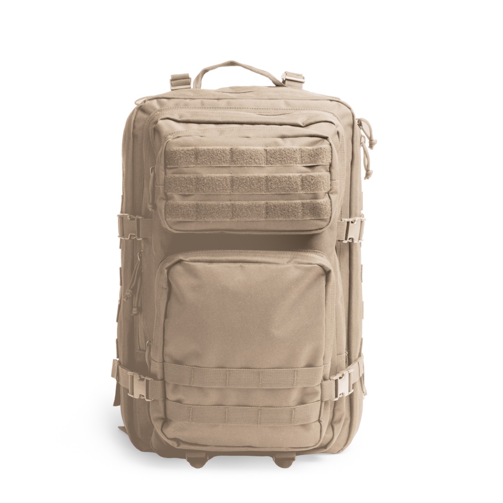 Sports backpack made of durable 600D polyester. Padded back and shoulders. Wide selection of front and interior pockets. Fully opening main compartment with double zipper and 3 interior pockets. Velcro fastened front section. Side adjusters. Anti-theft pocket on the back. Large capacity of 45 l. Backpack for any activity.