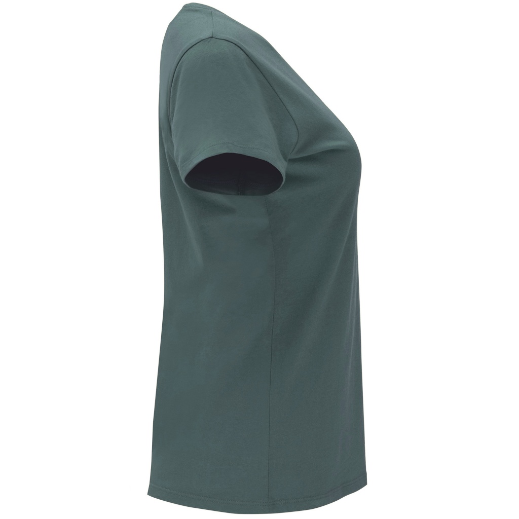 Short-sleeve t-shirt for women, fitted cut. Ribbed crew neck 1x1. Reinforced covered seams in neck.