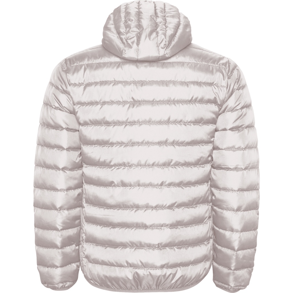 Men´s quilted jacket feathery to the touch with fitted hood.