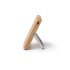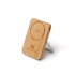 A 5000 mAh power bank with a bamboo body. A foldable vertical stand made from recycled aluminum. The power bank comes with a magnetic wireless charger for devices compatible with this technology.