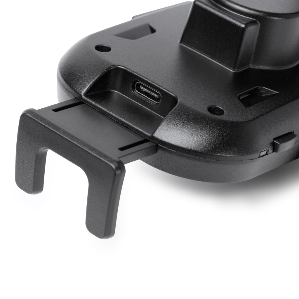 A car smartphone mount with wireless charging up to 15 W and two interchangeable mounting options. One mount features a mechanical clamp for installation on a vent, while the other uses a suction cup for installation on the windshield and includes an extendable arm for optimal position adjustment. The swivel mechanism allows for easy adjustment of the mount’s position. It is compatible with all devices supporting wireless charging technology, ensuring a secure fit thanks to automatic side adjustment. The set also includes manual adjustment at the bottom to keep your smartphone at the perfect height.