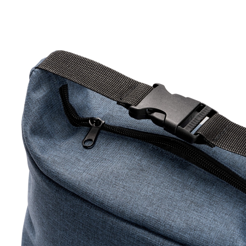 Thermal bag made of 600D RPET fabric. Buckle closure for easy transport. Internal isothermal compartment.