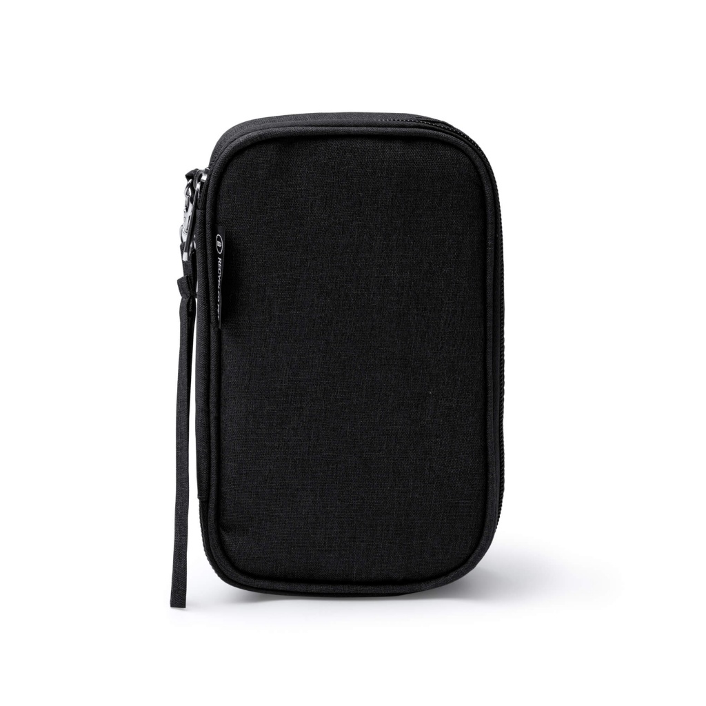 Pokrowiec wykonany z tkaniny RPET, zaprojektowany specjalnie do przechowywania i organizowania kabli. Posiada przegrodę z siatki zapinaną na zamek błyskawiczny, komorę główną zapinaną na rzep oraz przegrodę pośrednią do przechowywania drobnych przedmiotów. Pasujący pasek do przenoszenia w zestawie.