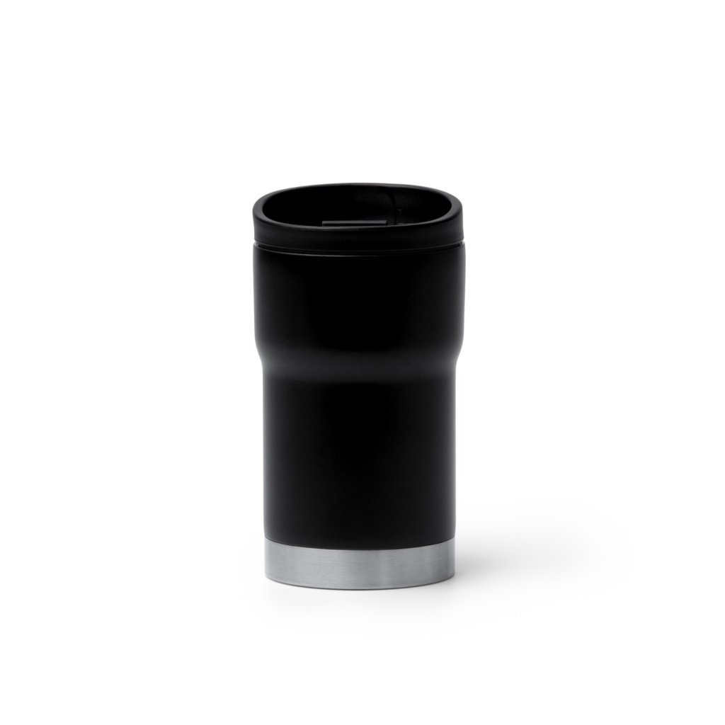 Kubek termiczny wykonany ze stali nierdzewnej 304 z podwójnymi ściankami. Pokrywka jest wykonana z poliuretanu i ma zamknięcie zabezpieczające przed wyciekaniem. Pojemność: 350 ml.