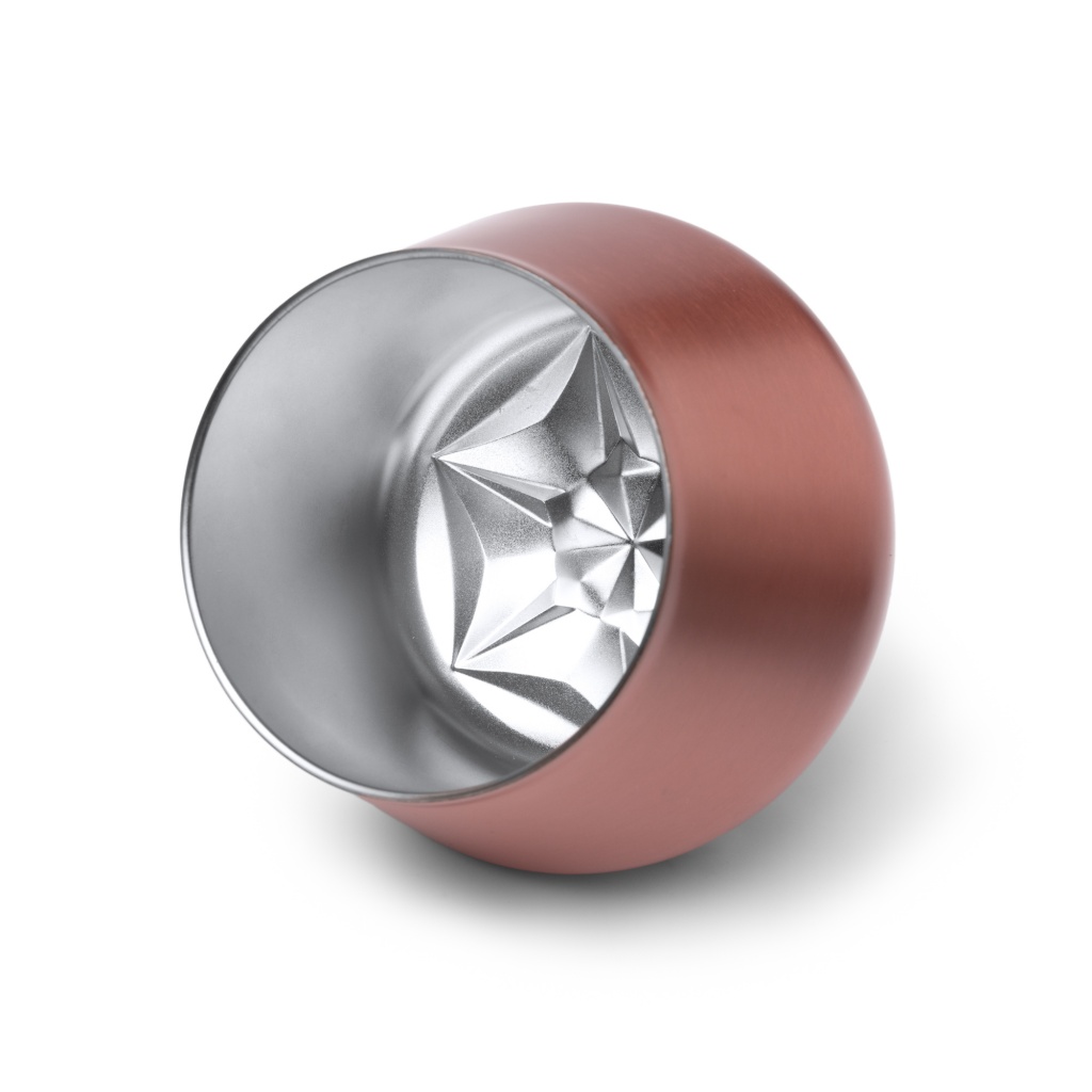 Kieliszek/Kubek  (2 w 1)  wykonany ze stali nierdzewnej. Wyjmowana, gwintowana podstawa wykonana z polipropylenu. Pojemność: 380 ml. Oryginalny wzór, który zapewnia elegancki i wyrafinowany wygląd.