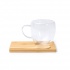 Zestaw obejmuje kubek o podwójnych ściankach wykonanych ze szkła borokrzemianowego, bambusową podstawkę i łyżeczkę. Kubek dobrze izoluje ciepło dzięki podwójnym ściankom, co sprawia, że jest wygodniejszy w użyciu.