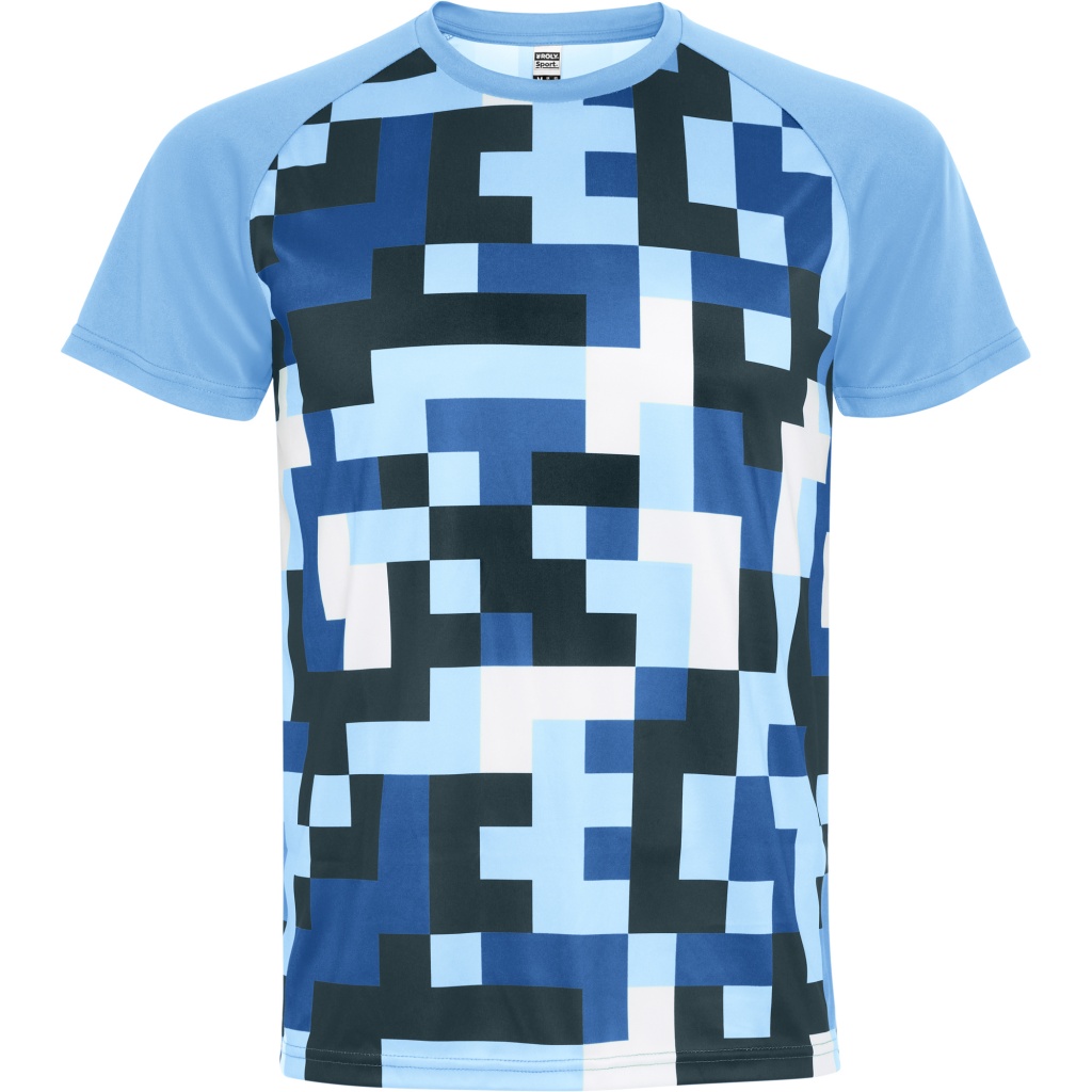 Koszulka techniczna unisex z krótkim rękawem typu raglan. Rękawy w jednolitym kolorze. Sublimowany przód i tył. Dekolt z tej samej tkaniny pasujący do koloru rękawów.