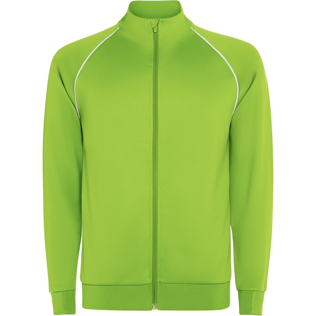 Bluza sportowa z wysokim dekoltem, raglanowymi rękawami i zamkiem błyskawicznym z przodu. Prążkowane obszycie, kołnierz i mankiety 1x1. Miękka taśma kryjąca przeszycie na karku z głównej tkaniny. Tylny dekolt i mankiety wykonane z głównej tkaniny. Odblaskowe lamówki na raglanowych szwach z tyłu i z przodu.