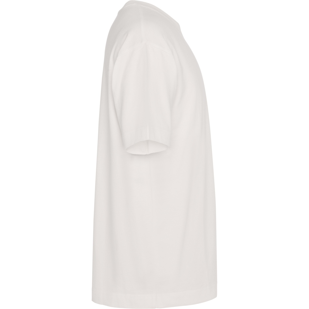 Gruba koszulka oversize z krótkim rękawem. Szeroki, prążkowany, okrągły dekolt 2x1. Taśma kryjąca przeszycie na karku z pasującej tkaniny. Szerokie podwójne szwy na rękawach i obszyciu.