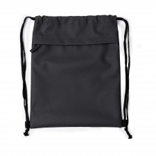 Worek wykonany z tkaniny RPET 210D z zewnętrzną kieszenią z wyściełanego materiału i zamkiem błyskawicznym.