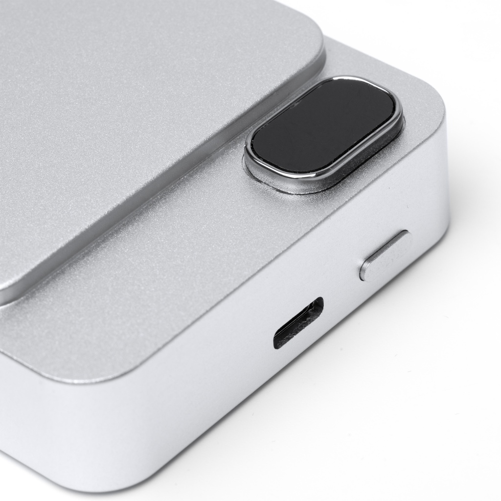 Powerbank magnetyczny o pojemności 10000 mAh z funkcją ładowania bezprzewodowego. Ekran wyświetlający poziom naładowania. Korpus z aluminium pochodzącego z recyklingu.