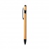 Ballpoint pen with bamboo body and button. Colorful details with chrome effect and matching touch indicator. Equipped with a large blue ink refill for smooth writing and longer use.