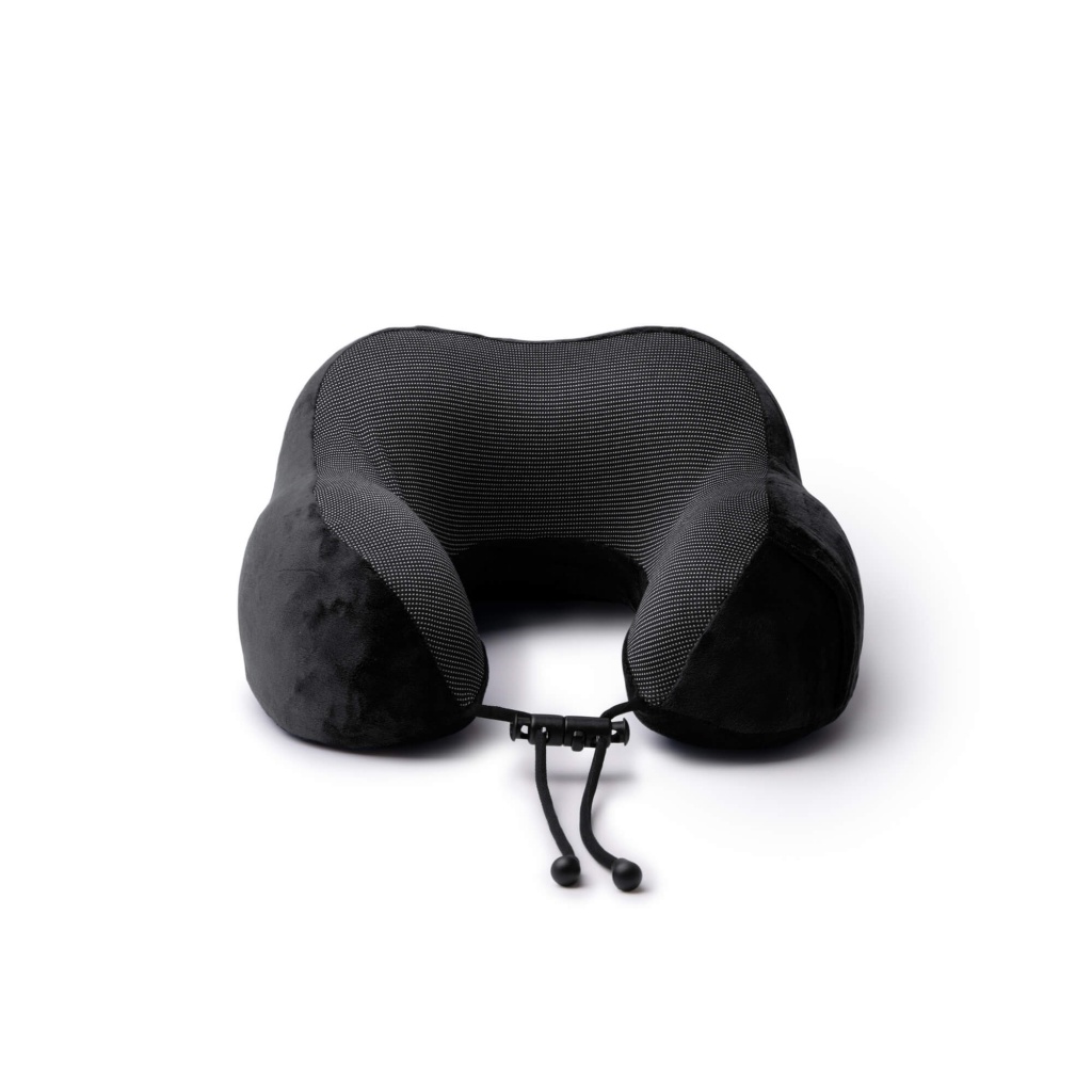 Travel pillow made of polyester. It has structural memory, which means that it regains its shape after each use. It offers anatomical adjustment, which allows it to easily adapt to the user's morphology, making trips more comfortable. It has an adjustable drawstring that can be detached for easy ergonomic adjustment of the pillow.