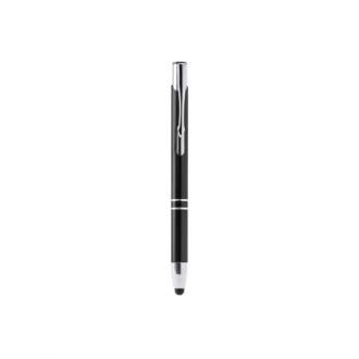 Ballpoint pen with aluminium barrel and button with anodised finish. Tactile indicator and jumbo refill with blue ink.
