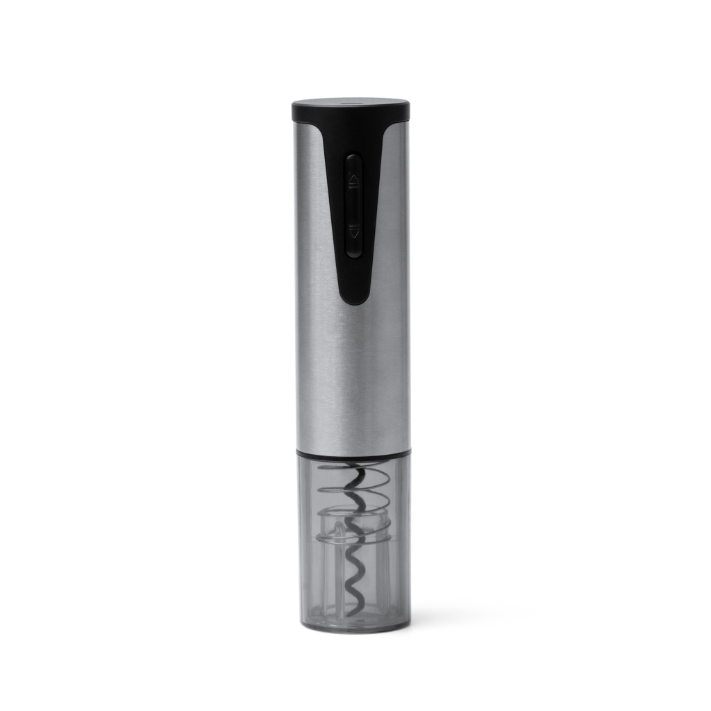 Electric corkscrew with rechargeable battery. Made of stainless steel and ABS plastic. Includes foil cutter and control button. A simple, practical, and useful tool for opening bottles.