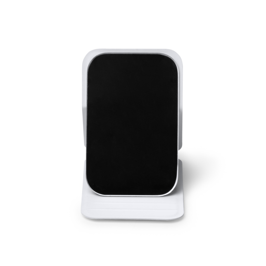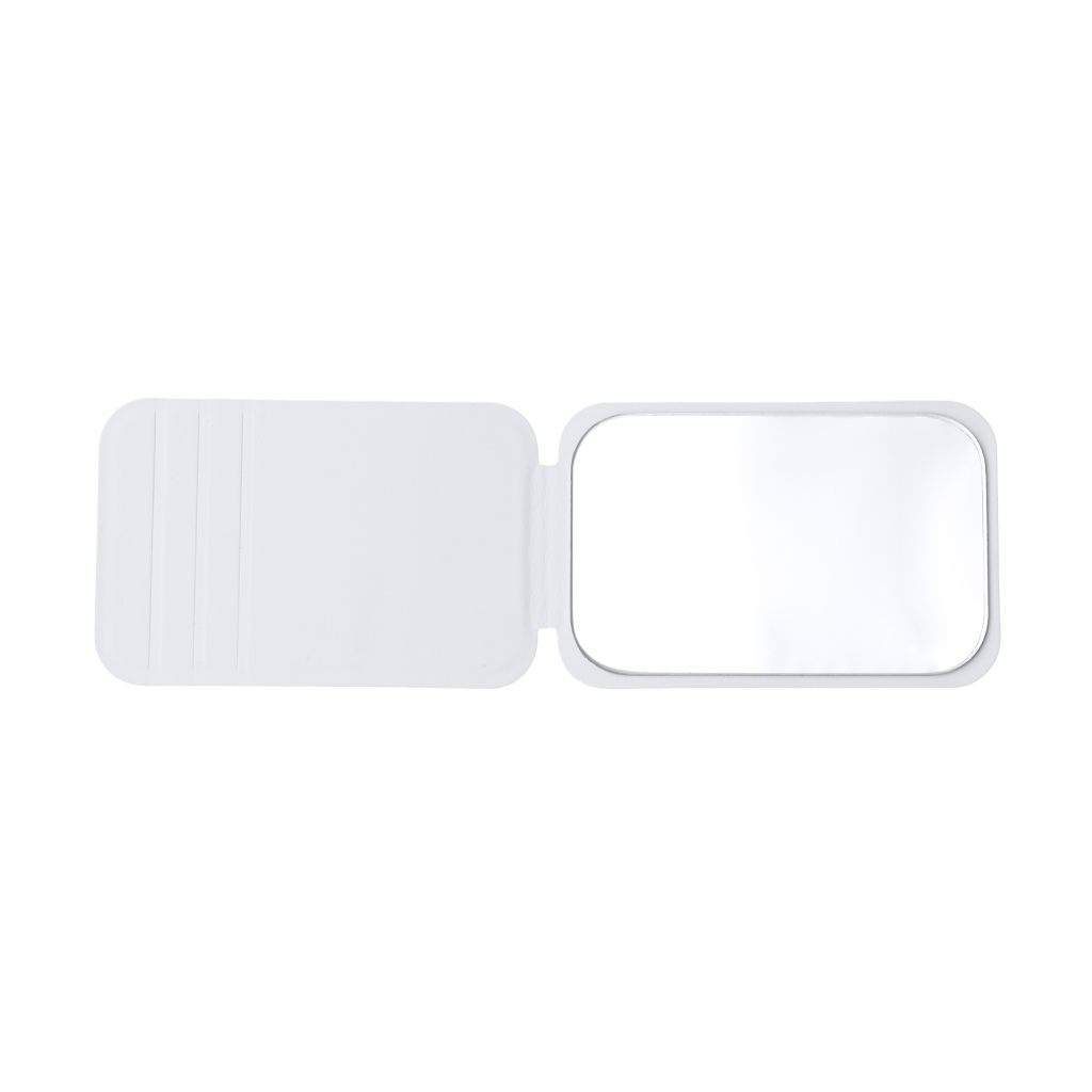 Folding mirror with a stand made of soft PU leather. The mirror cover has different settings to adjust it to different heights when folding.