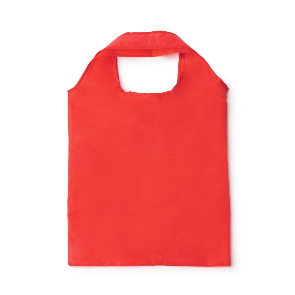 Foldable shopping bag made of soft 190T polyester. Designed with a Christmas stocking-shaped patch on the bag, which also serves as a pouch for storing the bag inside. Handles and carabiner for carrying included.