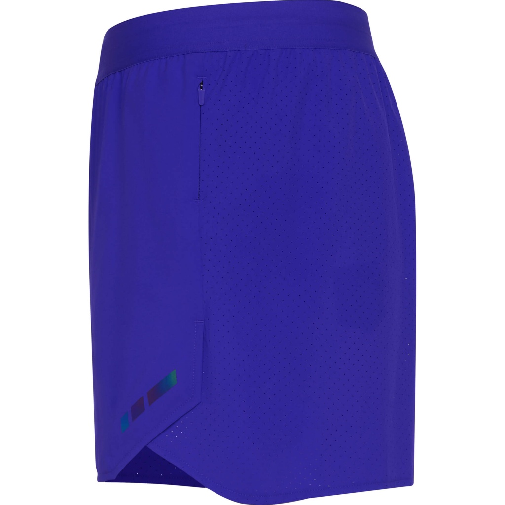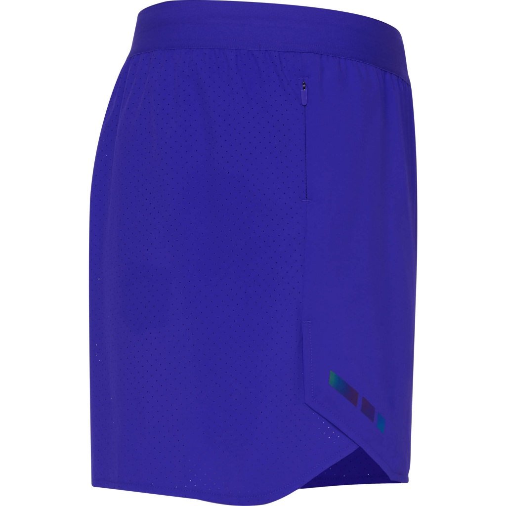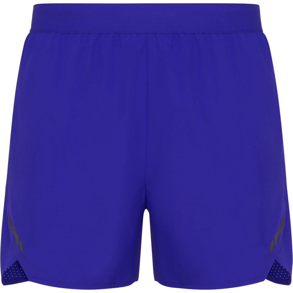 Men's breathable running shorts. Combination of lightweight and micro-perforated fabric. Mesh inner briefs. Mini side pocket with invisible zipper closure. Elastic waistband with internal drawstring. Reflective details on the front sides. GRS certified.