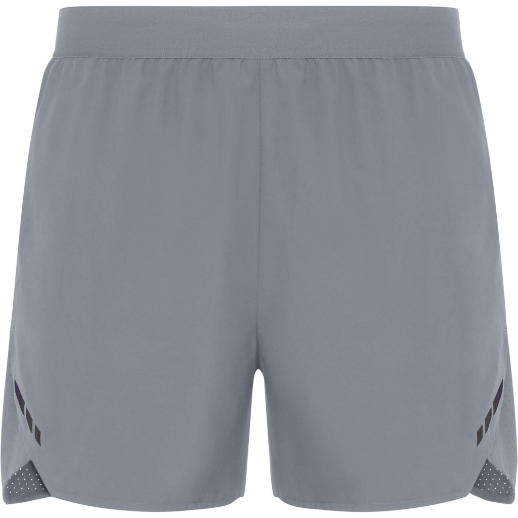 Men's breathable running shorts. Combination of lightweight and micro-perforated fabric. Mesh inner briefs. Mini side pocket with invisible zipper closure. Elastic waistband with internal drawstring. Reflective details on the front sides. GRS certified.