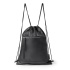 Drawstring bag made of 210D RPET fabric with mesh panels on the top and back. Features a front exterior pocket for carrying smaller items and a reflective strip on the front. The pocket has a zipper in a color that matches the body of the backpack.