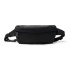 A waist bag made of PU leather and 600D RPET fabric, soft to the touch. It features a main compartment with a zipper closure and a matching drawstring. It also includes an adjustable strap with reinforced sides and a buckle closure for a secure and comfortable fit.
