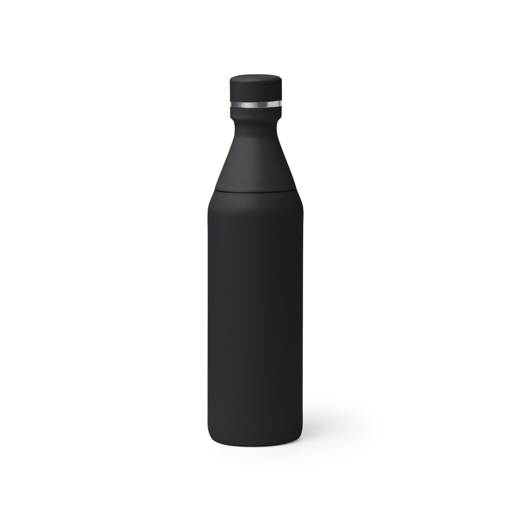 Double-walled thermal bottle made of 304 stainless steel. Capacity: 550 ml. It features a dual-opening system that separates the neck from the bottle, making it a more versatile solution and allowing, for example, ice to be added inside.