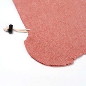 Folding bag made of 120 gsm recycled cotton, with 70 cm long straps and drawstring.