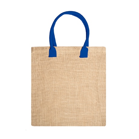 Natural jute bag with reinforced cotton handles in colour.