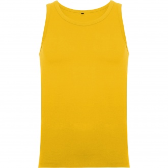 Vest with wide straps, slim fit, ribbed single jersey in neck and armhole. Looped side seams with four thread for greater durability.