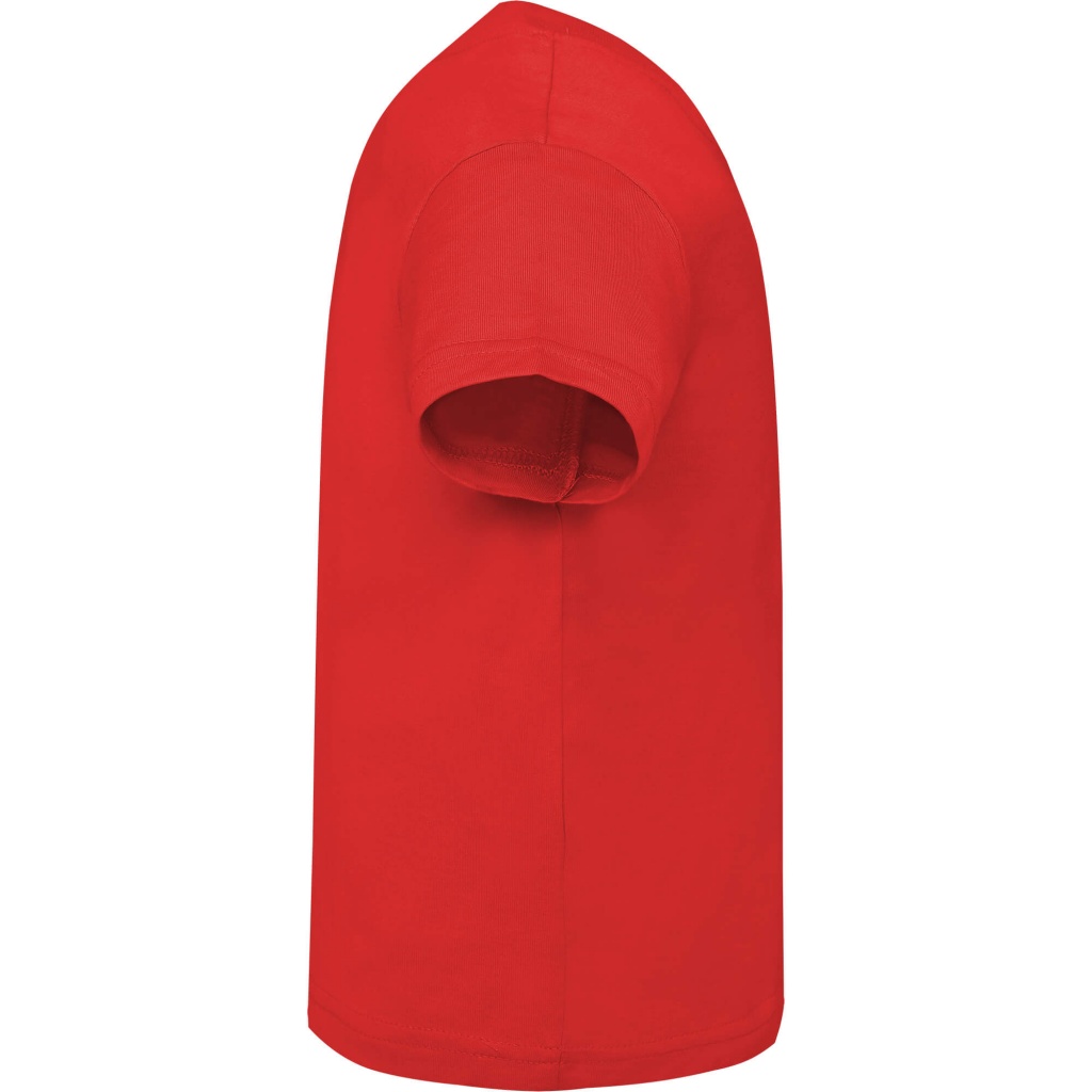 Short sleeve t-shirt, special for baby. Fine gauge fabric, compacted finishing. Round neck and placket in shoulder with snap buttons from size 6m to 18 m. Size 2 years with no placket in shoulder. Side seams.