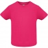 Short sleeve t-shirt, special for baby. Fine gauge fabric, compacted finishing. Round neck and placket in shoulder with snap buttons from size 6m to 18 m. Size 2 years with no placket in shoulder. Side seams.