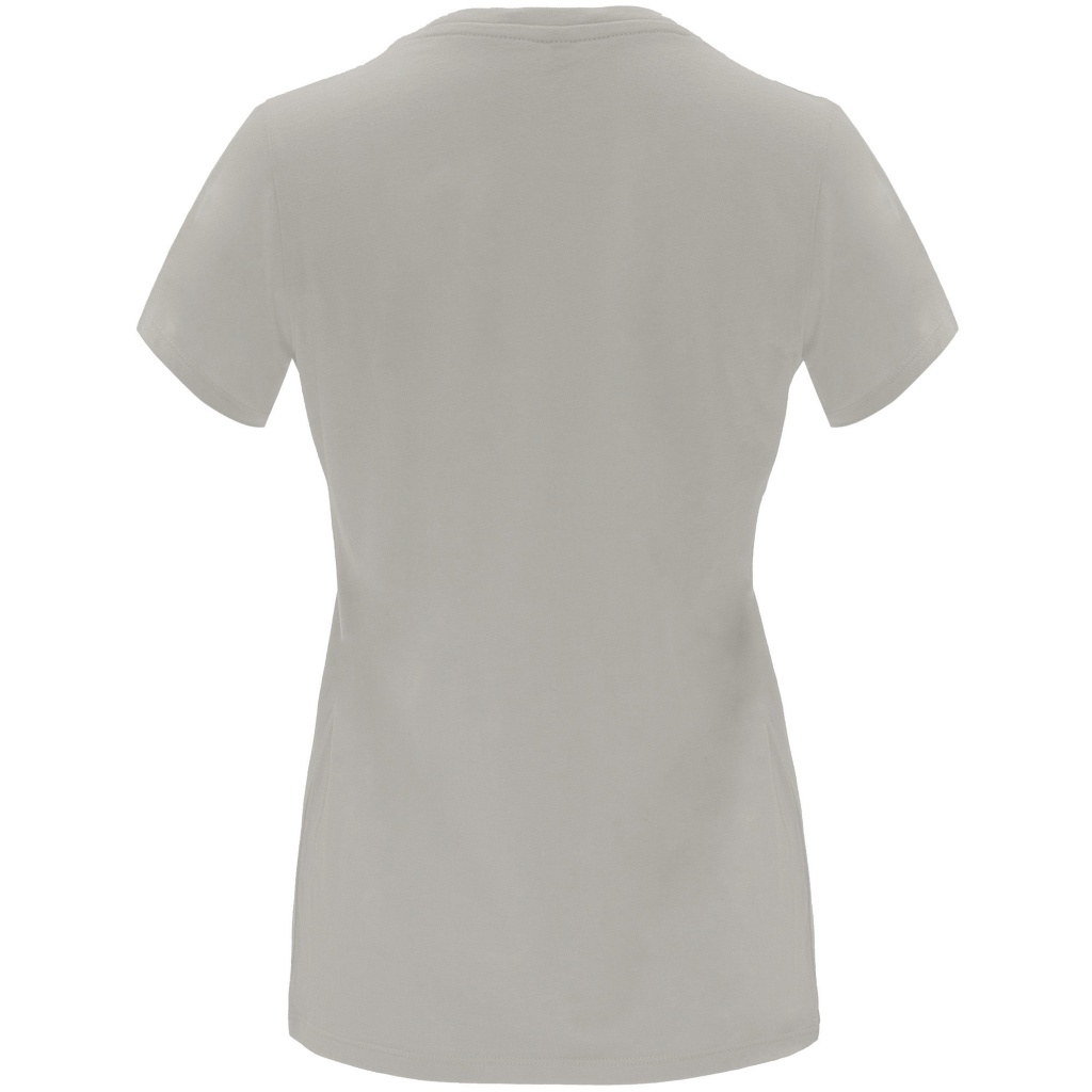 Short-sleeve t-shirt for women, fitted cut. Ribbed crew neck 1x1. Reinforced covered seams in neck.