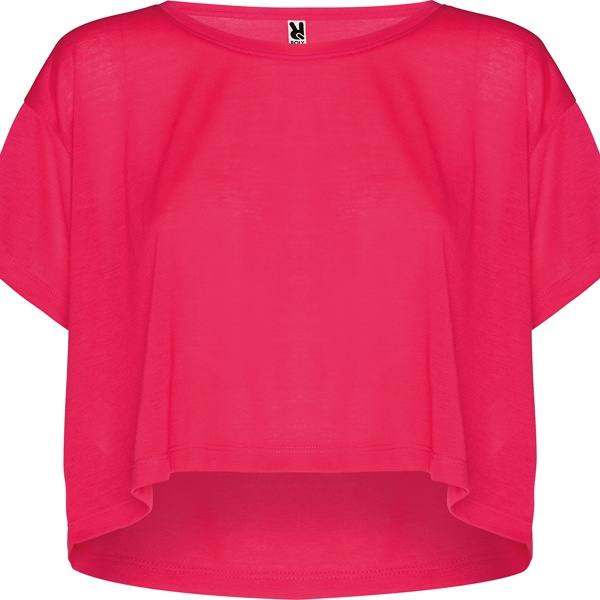 Short sleeve top crop with rounded neck. Short waist and oversize.