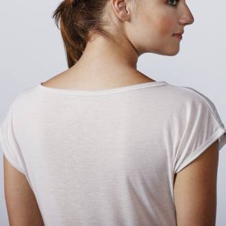 T-shirt created especially for sublimation, ideal for promotional campaigns as well as casual clothing. High-quality tunic made of polyester reminiscent of cotton, tied at the bottom. T-shirt with short sleeves and a wide neckline. Detail in the form of binding on the side.