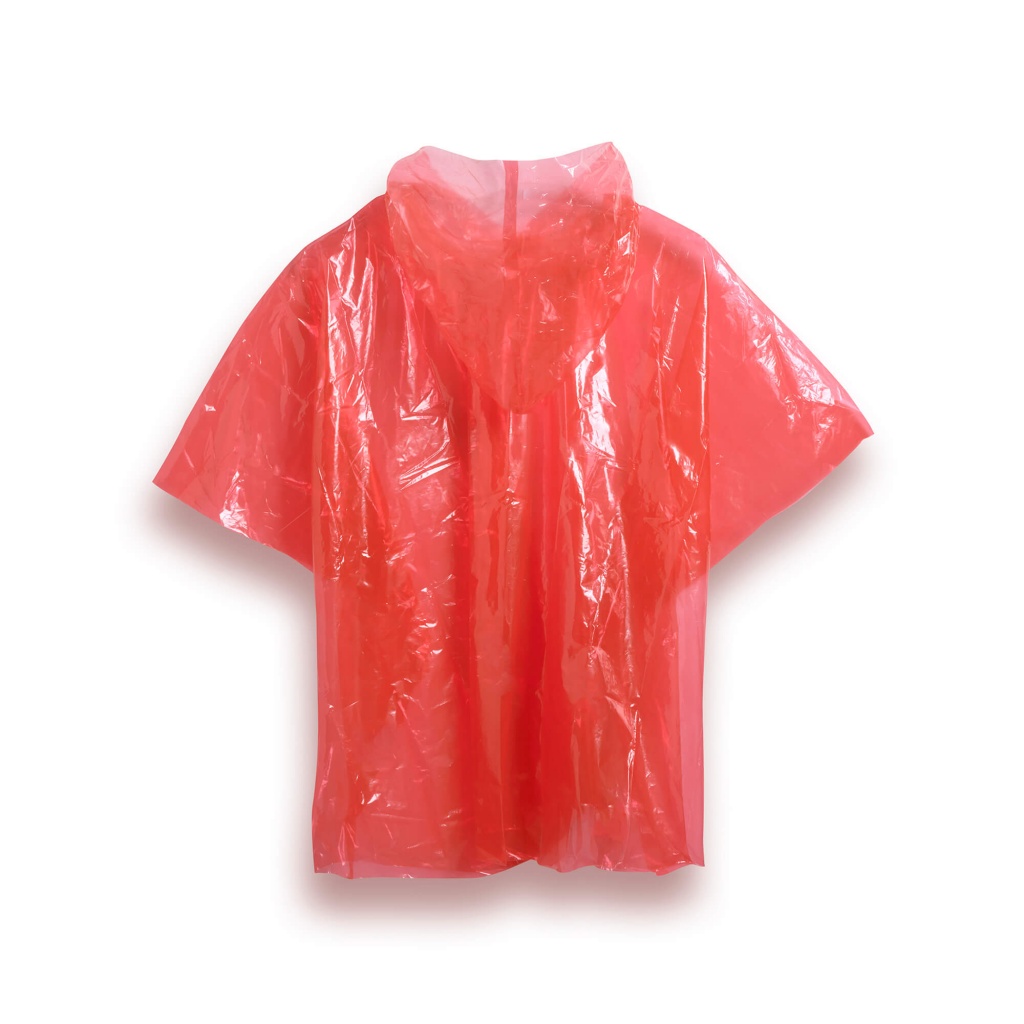 A waterproof, foldable poncho for children with a hood and armholes. It has a recycled RPET polyester cover and a matching carabiner, ideal for keeping children dry and comfortable on rainy days.