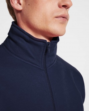 Sweatshirt with high collar and zip - same color. Inner side of collar in same color with reinforced border. Ribbed 1x1 knit at wrists and waist.