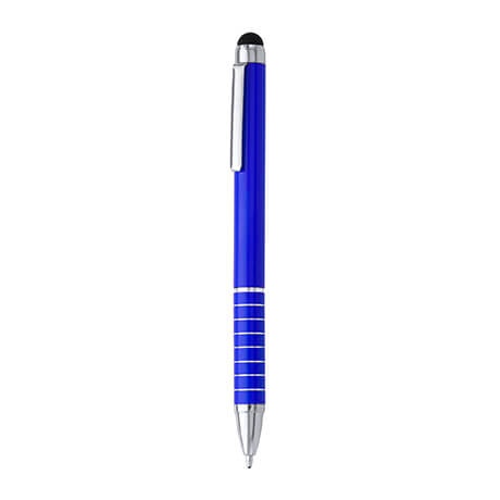 Aluminum pen with twist mechanism and tactile pointer. Blue ink.