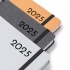 A5 size calendar with rings. Cover made of recycled leather with  engraving and elastic strap. 348 pages and an additional 4 pages with maps. Paper weight: 60 gsm. Interior with white pages.