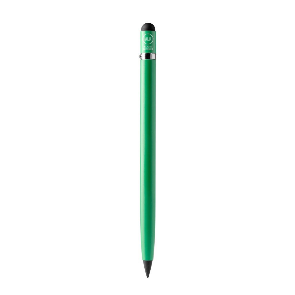 In addition to promoting your company or business, this pencil with recycled aluminium body and rubber is a conscious and elegant choice. Enjoy smooth, endless writing while helping to protect the planet.
