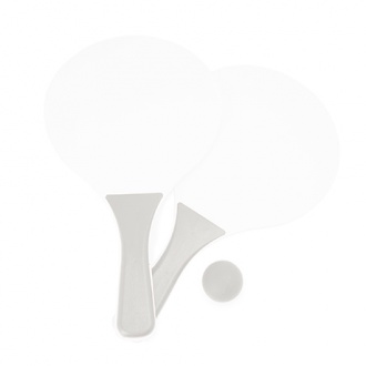 Set of two beach rackets with ball. Racket body in white and handle in same colour as ball.