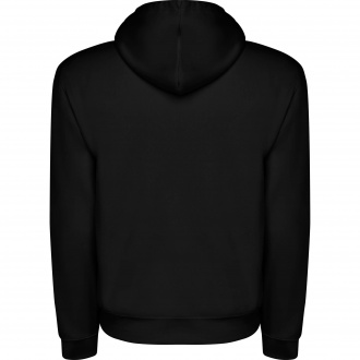 Hooded sweatshirt with kangaroo style pocket and adjustable drawcord. Elastane 1x1 rib in cuffs and waistband. Children size without drawcord.