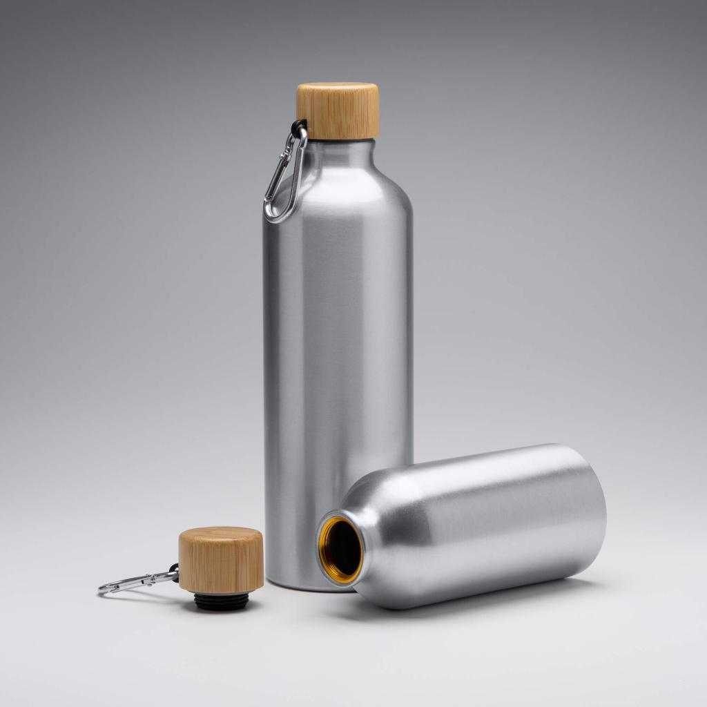 GELDA - Aluminium bottle with carabiner and bamboo lid, 400 ml.