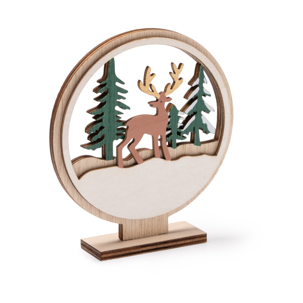 Wooden Christmas ornament with detachable base, ideal for charming Christmas decorations.