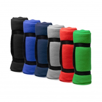 Fleece blanket with anti-pilling treatment. Carry handle with velcro fastening included.