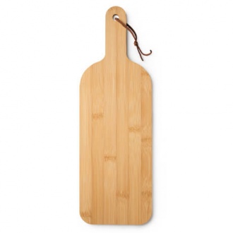 Wooden cutting board with a handle for easy carrying and a string for hanging, ideal for everyday use.