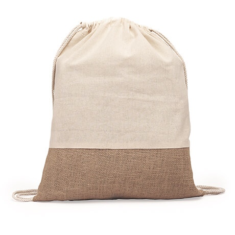 Eco-friendly backpack with drawstring, made of cotton and jute. Natural color.