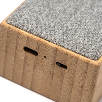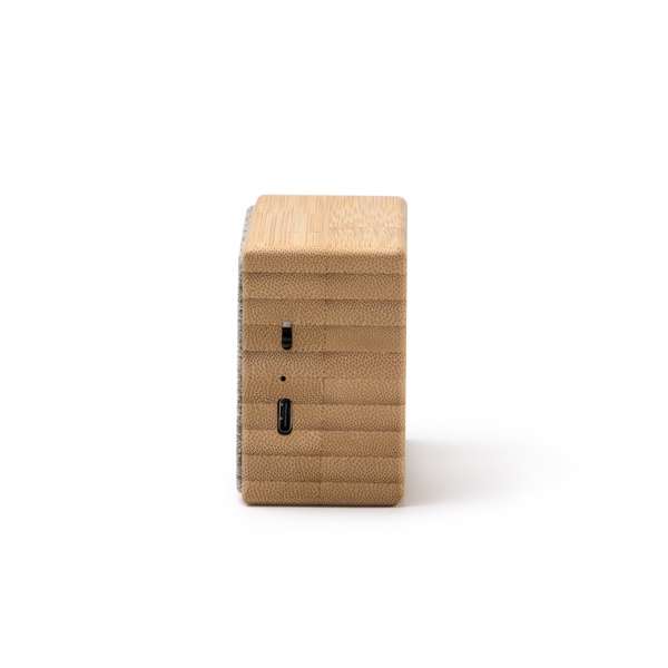 Wireless speaker with a main structure made of bamboo and RPET polyester. Output power: 3 W. USB Type-C cable included. Packaged in an environmentally friendly box.