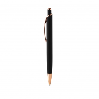• Perla - Pen with matte metal construction and copper finish details. Jumbo refill with blue ink.