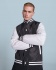 Unisex lightly insulated jacket in two colors. Collar, cuffs and hem with 1x1 ribbing, with two contrasting lines. Side pockets with zipper closure. Interior lined with lightly insulated lining. Plastic snap buttons in contrasting color. Access to interior on back and left side of chest for printing.