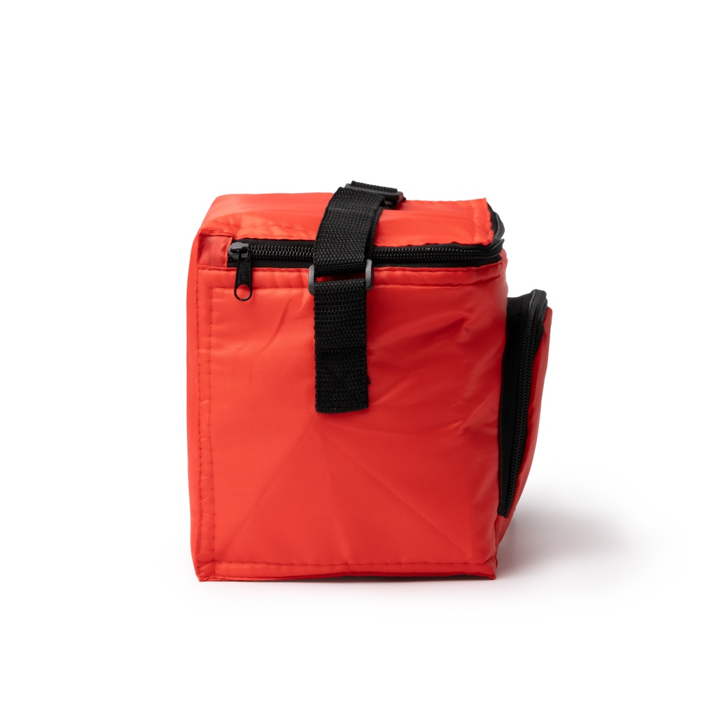 Thermal bag made of 210T RPET fabric with isothermal interior. Main pocket with zipper closure. Adjustable carrying handle.